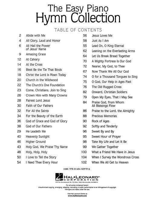The Easy Piano Hymn Collection Easy Piano Songbook