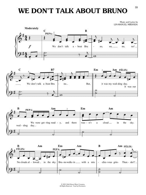 Encanto Music from the Motion Picture Soundtrack Publisher: Hal Leonard Category: Keyboard & Piano/Vocal/Guitar Series: Easy Piano Songbook Format: Softcover Lin-Manuel Miranda's soundtrack to Encanto has taken the music world by storm. The soundtrack and its...Regular price $27.99 -