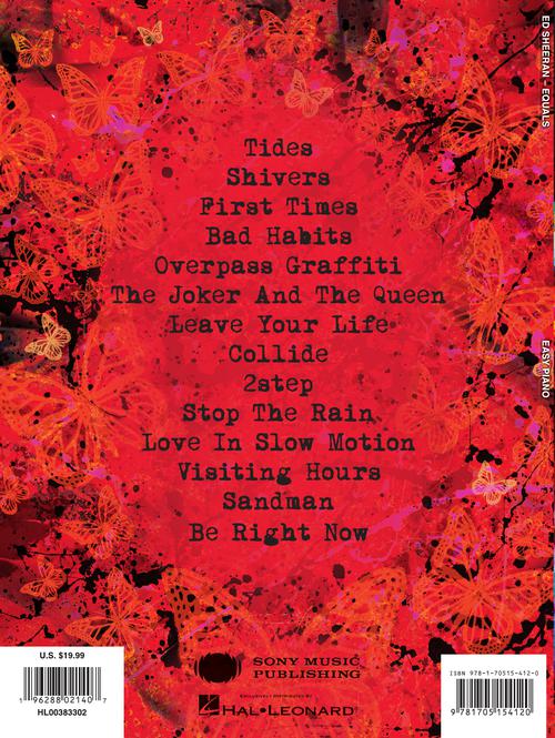 Ed Sheeran - Equals Publisher: Hal Leonard Category: Keyboard & Piano/Vocal/Guitar Series: Easy Piano Personality Format: Softcover Ed Sheeran calls his long-awaited 2021 release his coming-of-age record. Our matching folio features all 14 of its tracks...Regular price $23.99 -