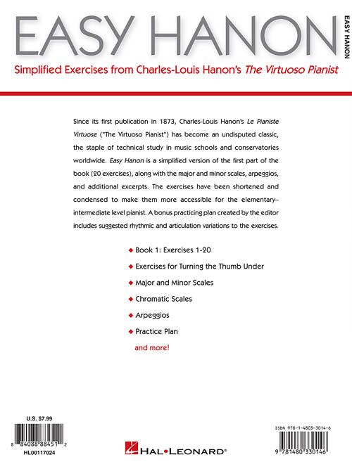 Composer: Charles-Louis Hanon Easy Hanon Simplified Exercises from Charles-Louis Hanon's The Virtuoso Pianist Softcover Since its first publication in 1873, Charles-Louis Hanon's Le Pianiste Virtuose (The Virtuoso Pianist) has became an undisputed classic, the staple of...Regular price $10.99