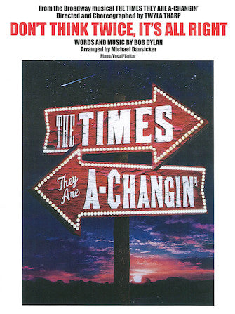 Composer: Bob Dylan Don't Think Twice, It's All Right from the Broadway musical The Times They Are A-Changin' Publisher: Music Sales America Category: Keyboard & Piano/Vocal/Guitar Series: Music Sales America Format: Paperback Sheet music arranged for...Regular price $4.99 -