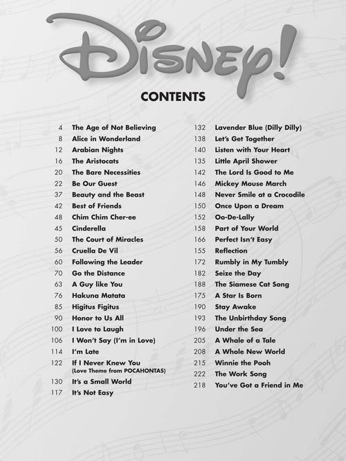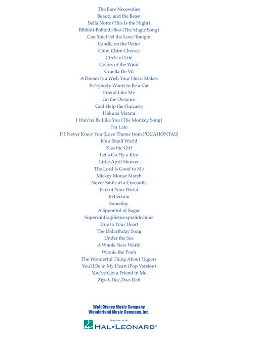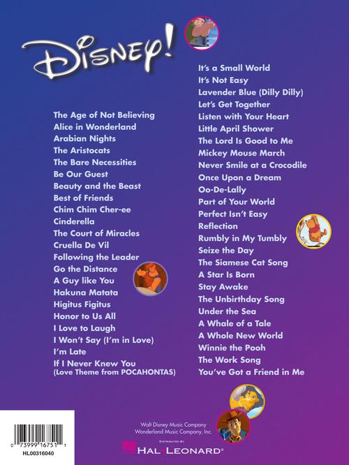 Disney! Publisher: Hal Leonard Category: Keyboard & Piano/Vocal/Guitar Series: Easy Piano Songbook Format: Paperback A terrific collection of 48 classic tunes from 33 Disney movies and shows: Alice in Wonderland ยท The Aristocats ยท Be Our...Regular price $35.99 -