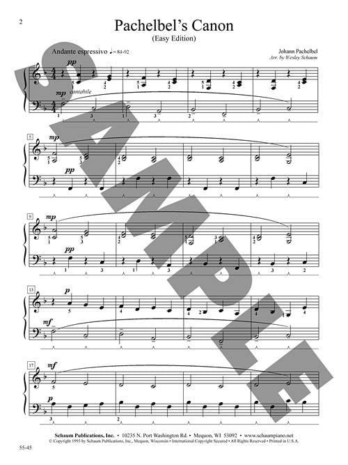 Pachelbels Canon Schaum Easy Classics Level 2 Piano Solo Sheet
