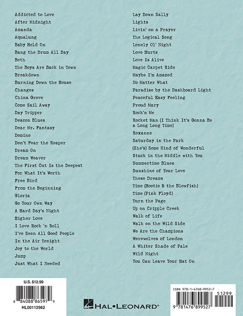 Classic Rock Paperback Songs Publisher: Hal Leonard Category: Keyboard & Piano/Vocal/Guitar Series: Paperback Songs Format: Paperback This terrific collection contains the melody lines, chords, and lyrics to 89 classic rock songs, including: American Woman · Another...Regular price $9.99 -