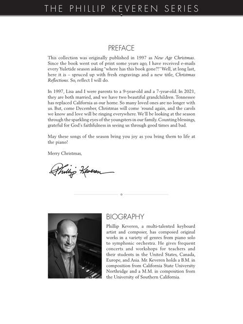 Christmas Reflections The Phillip Keveren Series Publisher: Hal Leonard Category: Keyboard & Piano/Vocal/Guitar Series: Easy Piano Songbook Format: Softcover 15 soulful carols arranged for easy piano solo. These pieces were originally published in the book New...Regular price $19.99 -