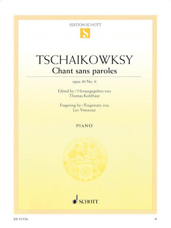 Composer: Pyotr Il'yich Tchaikovsky Chant sans paroles, Op. 40, No. 6 Piano Solo Publisher: Schott Category: Keyboard & Piano/Vocal/Guitar Series: Piano Format: Paperback Chant sans paroles, Op. 40, No. 6 Piano Solo Inventory # : 49018023...Regular price $8.99 -