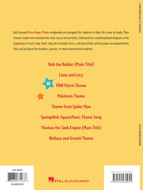 Cartoon Fun - 3rd Edition Publisher: Hal Leonard Category: Educational Keyboard Series: Five Finger Piano Songbook Format: Softcover Hal Leonard Five-Finger Piano songbooks are designed for students in their first year of study. They feature single-note...Regular price $10.99 -