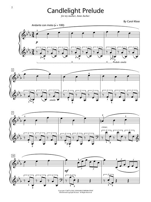 Candlelight Prelude Hal Leonard Student Piano Library Showcase Solo Level 4 Early Intermediate Publisher: Hal Leonard Category: Educational Keyboard Series: Educational Piano Library Format: Paperback With a hauntingly beautiful RH melody singing over an undulating triplet...Regular price $5.99 -