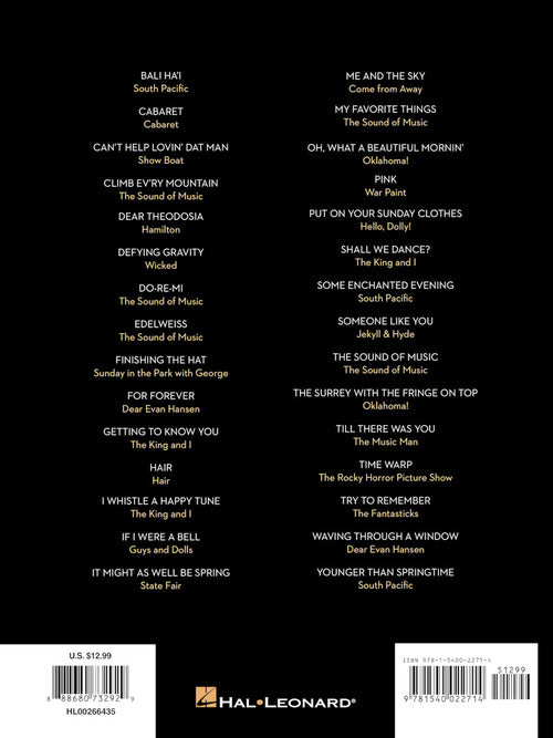 Broadway - Super Easy Songbook Publisher: Hal Leonard Category: Keyboard & Piano/Vocal/Guitar Series: Super Easy Songbook Format: Softcover It's super easy! This series features accessible arrangements for piano, with simple right-hand melody, letter names inside each...Regular price $21.99 -