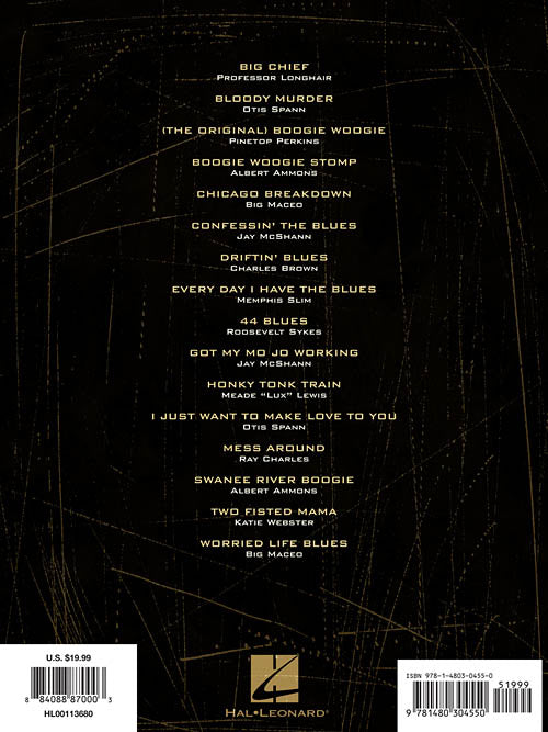 Blues Piano Legends Publisher: Hal Leonard Category: Keyboard & Piano/Vocal/Guitar Series: Artist Transcriptions Format: Softcover 16 transcriptions that all blues fans should know, including: Big Chief (Professor Longhair) · Bloody Murder (Otis Spann) · Boogie Woogie...Regular price $27.99 -
