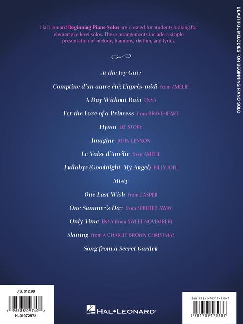 Beautiful Melodies for Beginning Piano Solo 14 Captivating Selections Arranged for Beginners Publisher: Hal Leonard Category: Keyboard & Piano/Vocal/Guitar Series: Beginning Piano Solo Songbook Format: Softcover Hal Leonard Beginning Piano Solos include a simple presentation of...Regular price $15.99 -