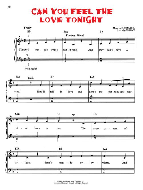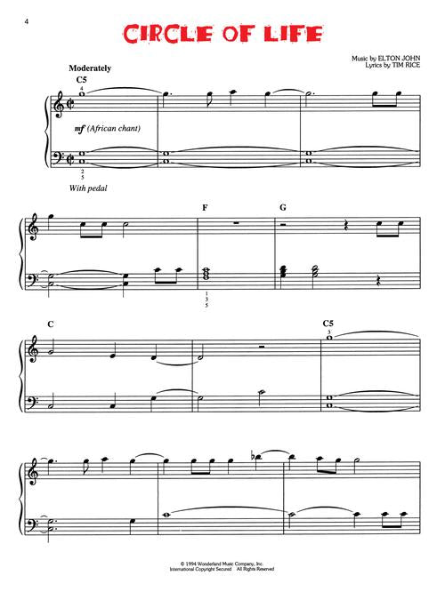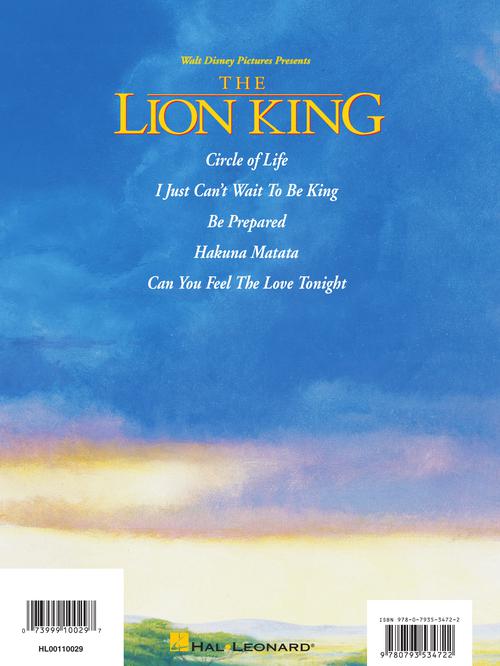 The Lion King Publisher: Hal Leonard Category: Keyboard & Piano/Vocal/Guitar Series: Easy Piano Songbook Format: Paperback 8 vocal selections from the Disney blockbuster: Be Prepared · Can You Feel the Love Tonight · Circle of Life...Regular price $23.99