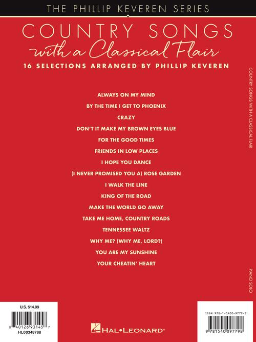 Country Songs with a Classical Flair The Phillip Keveren Series Piano Solo Publisher: Hal Leonard Category: Keyboard & Piano/Vocal/Guitar Series: Piano Solo Songbook Format: Softcover 16 country favorites creatively arranged in the classical style by Phillip...Regular price $17.99