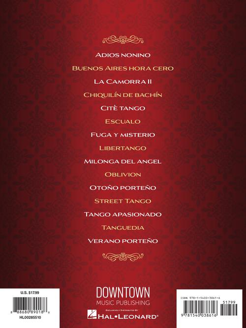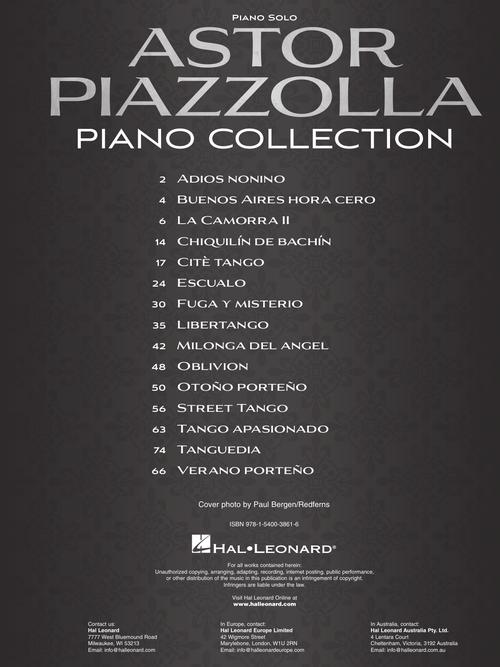 Astor Piazzolla Piano Collection Publisher: Hal Leonard Category: Keyboard & Piano/Vocal/Guitar Series: Piano Solo Personality Format: Softcover This collection features piano arrangements of 15 tangos by the master, including: Adios Nonino · Chiquilin de Bachin ·...Regular price $27.99 -