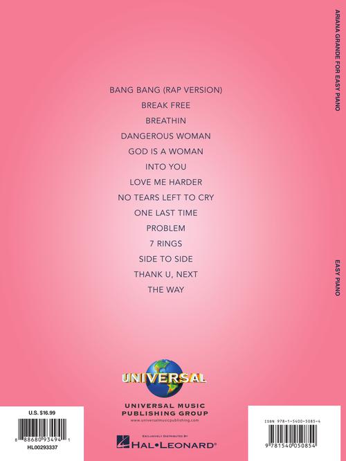 Ariana Grande for Easy Piano Publisher: Hal Leonard Category: Keyboard & Piano/Vocal/Guitar Series: Easy Piano Personality Format: Softcover 14 favorites from pop sensation Ariana Grande arranged for easy piano for early-level players. Includes lyrics! Songs include:...Regular price $23.99 -