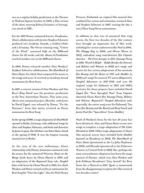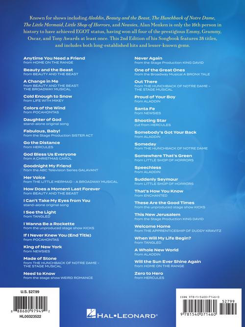 Composer: Alan Menken Alan Menken Songbook - 2nd Edition Publisher: Hal Leonard Category: Keyboard & Piano/Vocal/Guitar Series: P/V/G Composer Collection Format: Softcover Known for shows including Aladdin, Beauty and the Beast, The Hunchback of Notre Dame,...Regular price $33.99 -