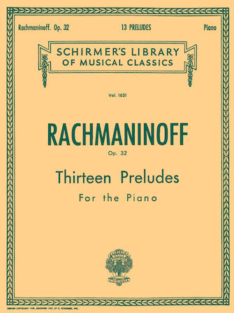 13 Preludes, Op. 32 Schirmer Library of Classics Volume 1631 Piano Solo Publisher: G. Schirmer, Inc. Category: Classical Series: Piano Collection Format: Paperback Contents: Prelude in C Major, Op. 32, No. 1 · Prelude in B-flat...Regular price $10.99 -