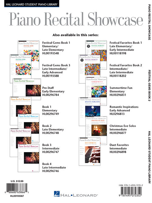 Festival Gems Book 2 - 10 Outstanding NFMC Early Intermediate/Intermediate Solos Piano Recital Showcase Publisher: Hal Leonard Category: Educational Keyboard Series: Educational Piano Library Format: Softcover This convenient collection features 10 NFMC-selected piano solos at the...Regular price $15.99 -