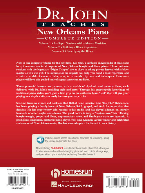 Author: Dr. John Dr. John Teaches New Orleans Piano - Complete Edition Listen & Learn Series Includes Books 1, 2 & 3 Softcover Audio Online Dr. John, a veritable encyclopedia of music and lore, immerses you...Regular price $33.99 -