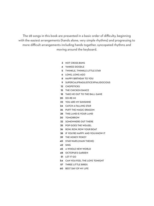 Sequential Kids' Piano Songs 24 Easy Favorites Carefully Selected and Arranged in Order of Difficulty Publisher: Hal Leonard Category: Keyboard & Piano/Vocal/Guitar Series: Easy Piano Songbook Format: Softcover Kids of all ages can play their favorites...Regular price $21.99 -