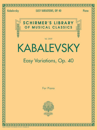 Easy Variations, Op. 40 Schirmer Library of Classics Volume 2059 Publisher: G. Schirmer, Inc. Category: Keyboard & Piano/Vocal/Guitar Series: Piano Format: Softcover These wonderful teaching pieces by the Russian keyboard pedagogue and composer are now available...Regular price $13.99