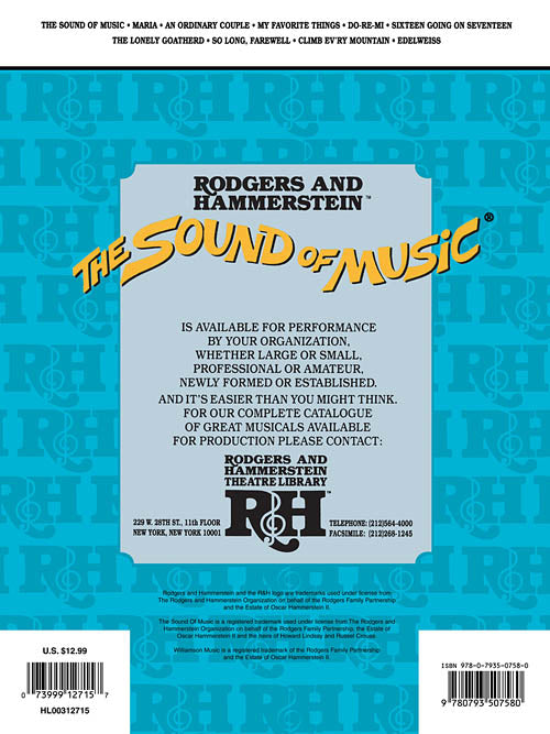 The Sound of Music (from The Sound of Music) Publisher: Hal Leonard Category: Keyboard & Piano/Vocal/Guitar Series: Easy Piano Format: Paperback Sheet Music Inventory # : 00302210 UPC: 73999027907 ISBN: Width: 9" Length: 12" Height: 0.011"...Regular price $4.99 -