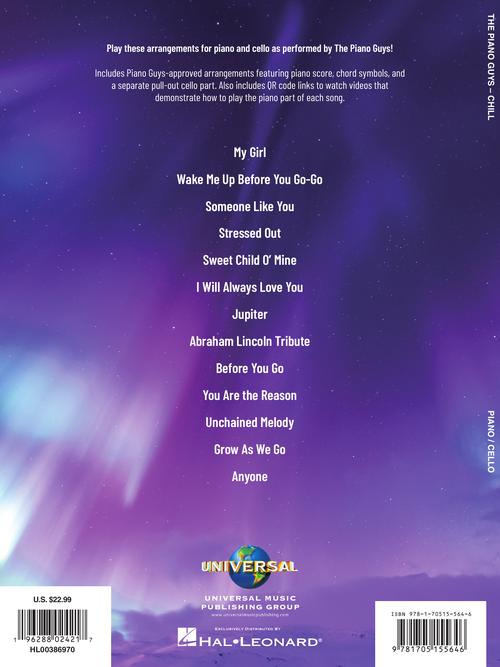 The Piano Guys - Chill for Piano and Cello Publisher: Hal Leonard Category: Keyboard & Piano/Vocal/Guitar Series: Personality Format: Softcover The Piano Guys say of their 2021 album Chill, We hope this album is the kind...Regular price $35.99 -