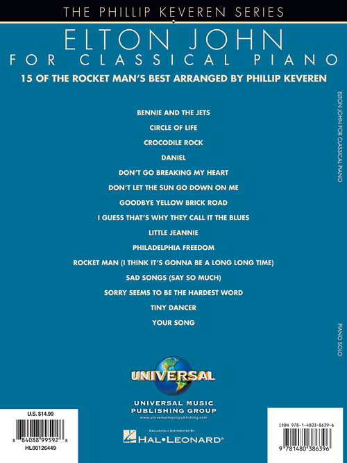 Elton John for Classical Piano arr. Phillip Keveren The Phillip Keveren Series Piano Solo Publisher: Hal Leonard Category: Keyboard & Piano/Vocal/Guitar Series: Piano Solo Personality Format: Softcover 15 of the Rocket Man's best artfully arranged by...Regular price $29.99 -