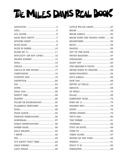 Artist: Miles Davis The Miles Davis Real Book - Second Edition C Instruments Publisher: Hal Leonard Category: Keyboard & Piano/Vocal/Guitar Series: Fake Book Format: Softcover Miles Davis gave the jazz world innumerable musical innovations and his...Regular price $35.99 -