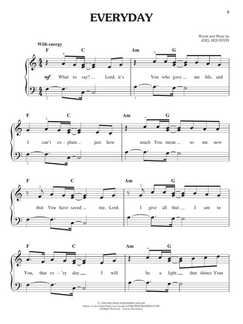 The Hillsong Worship Collection Easy Piano Publisher: Hal Leonard Category: Keyboard & Piano/Vocal/Guitar Series: Easy Piano Songbook Format: Softcover Easy piano arrangements of 20 worship favorites from this Australian music ministry. Includes: Came to My Rescue...Regular price $21.99 -