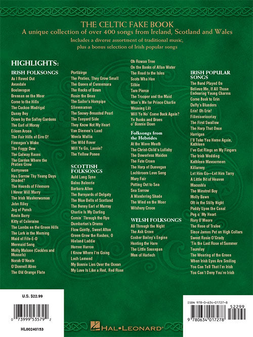 Composer: Various The Celtic Fake Book C Edition Publisher: Hal Leonard Category: Keyboard & Piano/Vocal/Guitar Series: Fake Book Format: Paperback The popularity of Celtic music has soared over the last decade due to the resurgence of...Regular price $35.99 -