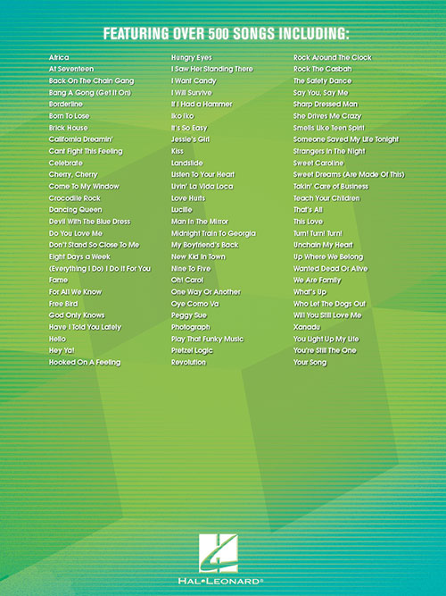 Artist: Various The Best Rock Pop Fake Book for C Instruments Publisher: Hal Leonard Category: Keyboard & Piano/Vocal/Guitar Series: Fake Book Format: Softcover An indispensable collection of over 500 chart hits, including: Africa · Ain't No...Regular price $47.99 -