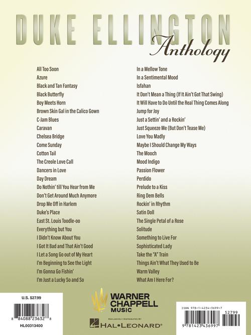 Composer: Duke Ellington Duke Ellington Anthology Publisher: Hal Leonard Category: Keyboard & Piano/Vocal/Guitar Series: P/V/G Composer Collection Format: Softcover The most important composer in the history of jazz, the legendary Duke Ellington lead his band continuously...Regular price $35.99 -