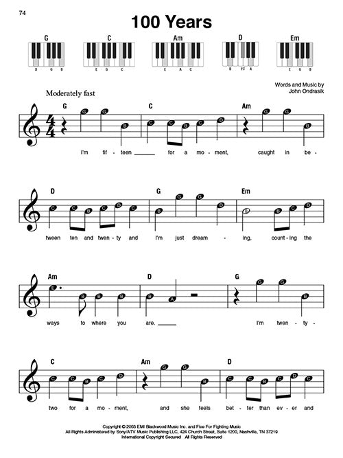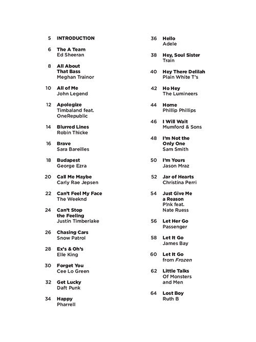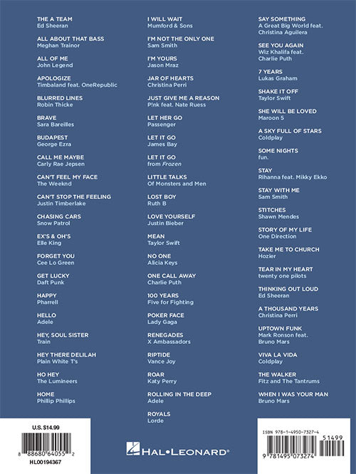 Hit Songs - Super Easy SongbookPublisher: Hal LeonardCategory: Keyboard & Piano/Vocal/GuitarSeries: Super Easy SongbookFormat: SoftcoverIt's super easy! This series features accessible arrangements for piano, with simple right-hand melody, letter names inside each note, basic left-hand chord...Regular price $21.99 -