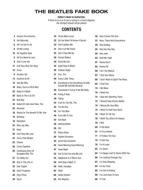 Artist: The Beatles The Beatles Fake Book C Edition Publisher: Hal Leonard Category: Keyboard & Piano/Vocal/Guitar Series: Fake Book Format: Paperback For the first time ever! 200 of the Beatles' hits arranged in fake book format,...Regular price $59.99 -