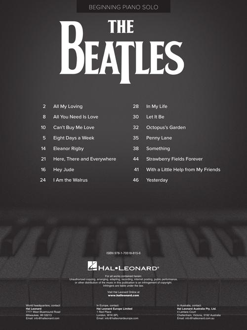 The Beatles for Beginning Piano Solo Publisher: Hal Leonard Category: Keyboard & Piano/Vocal/Guitar Series: Beginning Piano Solo Format: Softcover This collection features 16 classics arranged for beginners with a simple presentation of melody, harmony, rhythm, and...Regular price $23.99 -