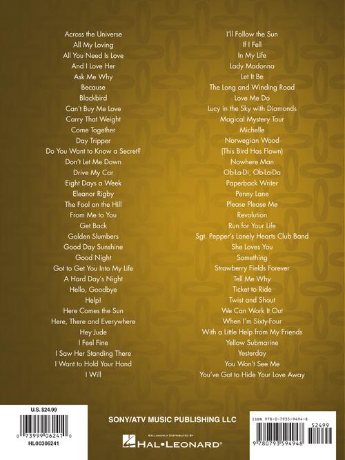 Artist: The Beatles The Beatles Collection - 2nd Edition Publisher: Hal Leonard Category: Keyboard & Piano/Vocal/Guitar Series: Big Note Personality Format: Paperback 20 new songs have been added to the second edition of this big-note piano...Regular price $32.99 -