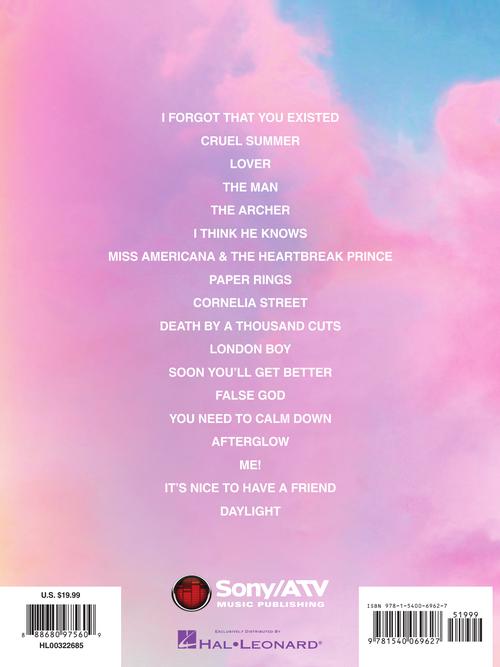 Taylor Swift - Lover Easy Piano Songbook Publisher: Hal Leonard Category: Keyboard & Piano/Vocal/Guitar Series: Easy Piano Personality Format: Softcover This songbook features all 18 tracks from Taylor's 2019 blockbuster release. Songs are arranged at an...Regular price $29.99 -