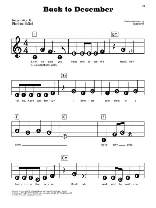 Taylor Swift - 2nd Edition E-Z Play Today #325 Publisher: Hal Leonard Category: Keyboard & Piano/Vocal/Guitar Series: E-Z Play Today Format: Softcover Now even beginners can enjoy playing their favorites from Taylor Swift! E-Z Play Today...Regular price $22.99 -