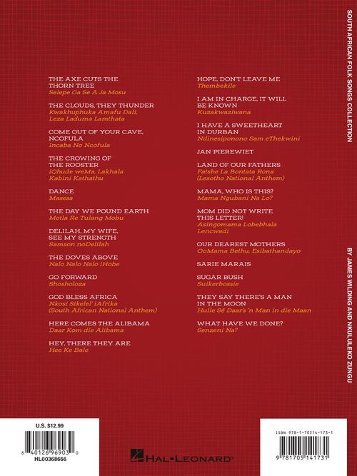 South African Folk Songs Collection 24 Traditional Folk Songs for Intermediate Piano Solo Publisher: Hal Leonard Category: Educational Keyboard Series: Educational Piano Solo Format: Softcover Introduce piano students to the beautiful traditional music of South Africa...Regular price $15.99 -