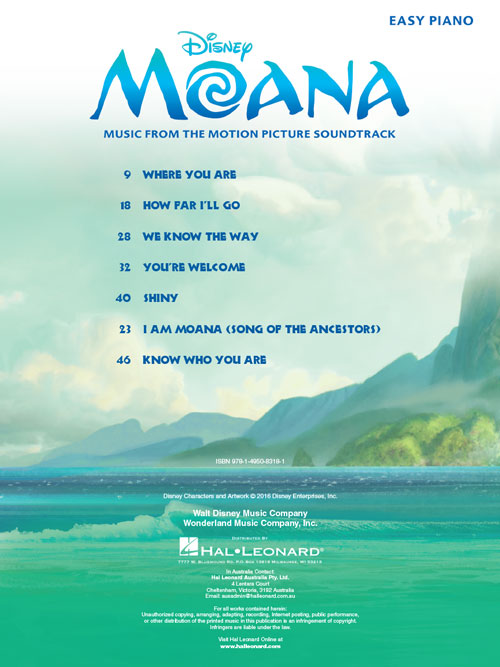 Moana Easy Piano Songbook
