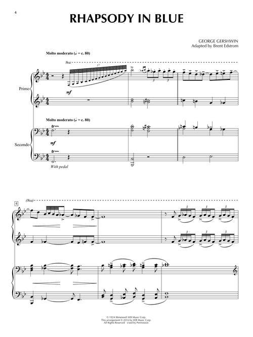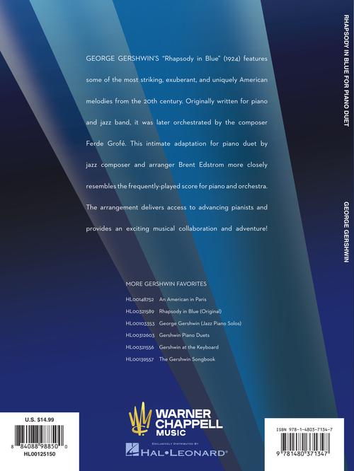 Composer: George Gershwin Rhapsody in Blue for Piano Duet Later Intermediate to Advanced Level / 1 Piano, 4 Hands Softcover Gershwin's Rhapsody in Blue features some of the most striking, exuberant, and uniquely American melodies from...Regular price $20.99 -