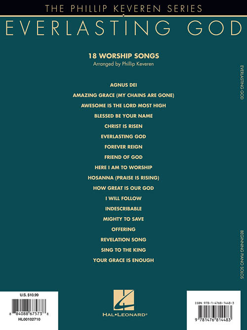 Arranger: Phillip Keveren Everlasting God Softcover 18 worship songs masterfully arranged for beginning soloists by Phillip Keveren. Includes: Amazing Grace (My Chains Are Gone) · Christ Is Risen · Everlasting God · Forever Reign · Here...Regular price $17.99 -