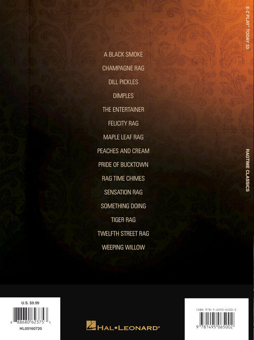 Ragtime Classics E-Z Play Today #33 Publisher: Hal Leonard Category: Keyboard & Piano/Vocal/Guitar Series: E-Z Play Today Format: Softcover A fun collection of 15 ragtime favorites arranged in our easy to read and play E-Z Play...Regular price $11.99 -