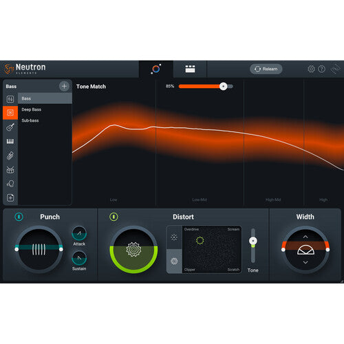 Musicians and producers looking to sculpt sounds seamlessly while staying in the flow will appreciate iZotope Neutron Elements 4, a modern intelligent channel strip designed to be an introduction to iZotope Neutron's mixing algorithms. This redesigned software harnesses the power of the new Assistant View and Detail View, which provide access to the intelligent control center that produces fast personalized results. Utilize the Punch, Distortion, and Width elements before jumping to the Detail View to fine-tune.