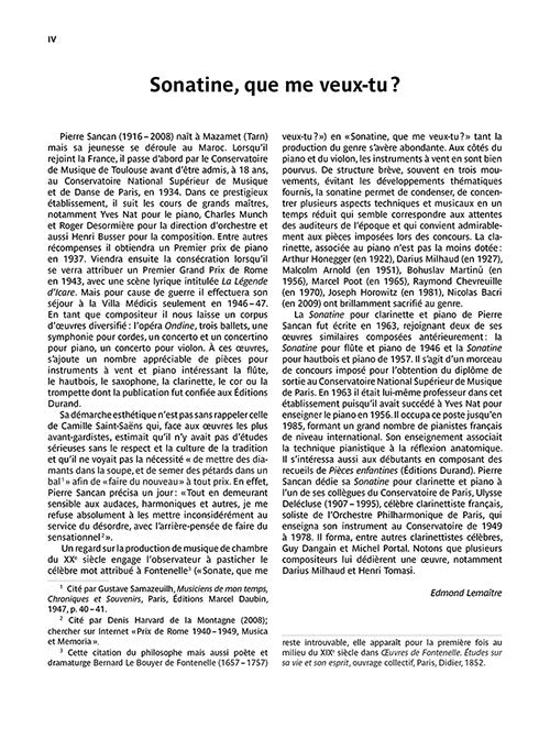 Sonatine for Clarinet in B-flat and Piano Music Francaise Series 0