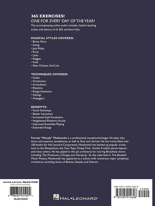 Saxophone AerobicsPublisher: Hal LeonardCategory: Solo InstrumentalSeries: Sax InstructionFormat: Softcover Audio OnlineThis 52-week, one-exercise-a-day workout program for developing, improving and maintaining saxophone technique includes access to demo audio tracks online for all 365 workout licks! Techniques covered...Regular price $23.99