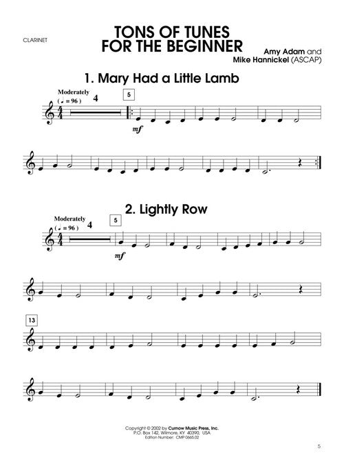Tons of Tunes for the Beginner (audio access included) Bb Clarinet - Grade 0.5 t