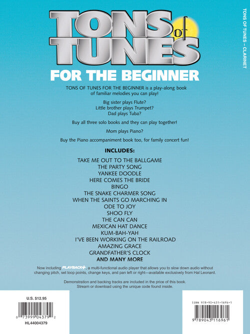 Tons of Tunes for the Beginner (audio access included)Bb Clarinet - Grade 0.5 to 1Publisher: Curnow MusicCategory: Solo InstrumentalSeries: Curnow Play-Along BookFormat: Softcover Audio OnlineThere are two things that beginners really want to do: play songs...Regular price $17.99 -
