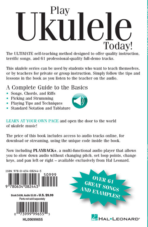 Play Ukulele Today! - Level 1Play Today Plus PackPublisher: Hal LeonardCategory: Solo InstrumentalSeries: Play Today Instructional SeriesFormat: Softcover Audio OnlineThis is the ultimate self-teaching method designed to offer quality instruction, terrific songs, and professional quality recordings...Regular price $15.99 -